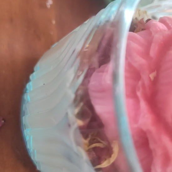 This candle is a rose-scented candle with dry petals on top and bottom for the rose on top u can pick any color u want for the rose and for the scent u can pick any scents that listed down below